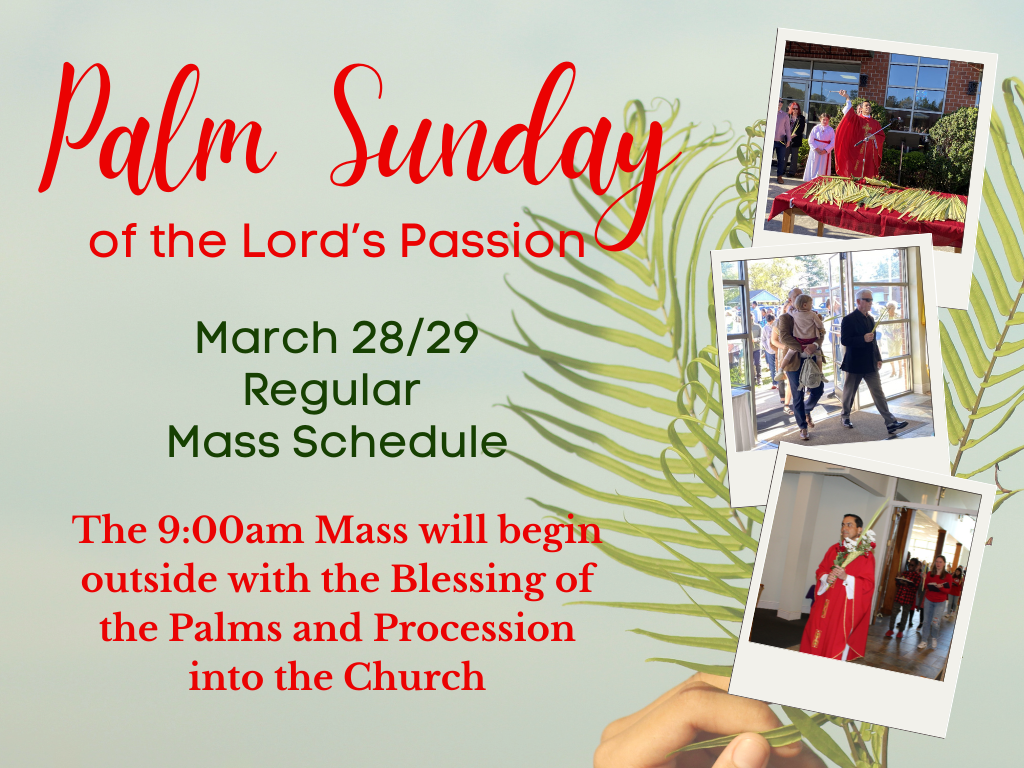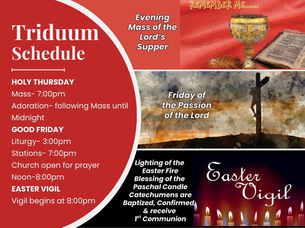 Please note that there will be no confessions Holy Saturday and no 4:00pm Mass.