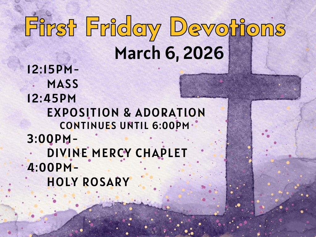 March 6th- 12:15pm followed by First Friday Devotions