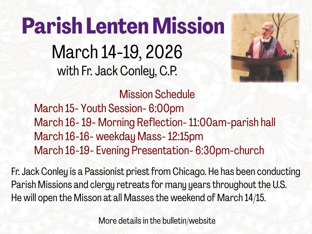 Our Parish Communal Penance Service is Tuesday, February 24th at 6:30pm.